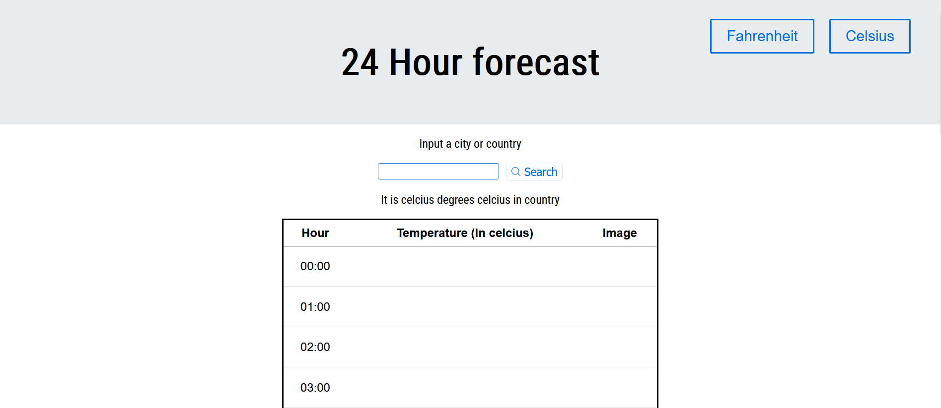 This is a React application that displays the daily forecast for a specific location and allows the user to toggle between Celsius and Fahrenheit temperature units. The app uses the WeatherAPI to get the current and hourly weather forecast for the user-entered location and displays it in a table.